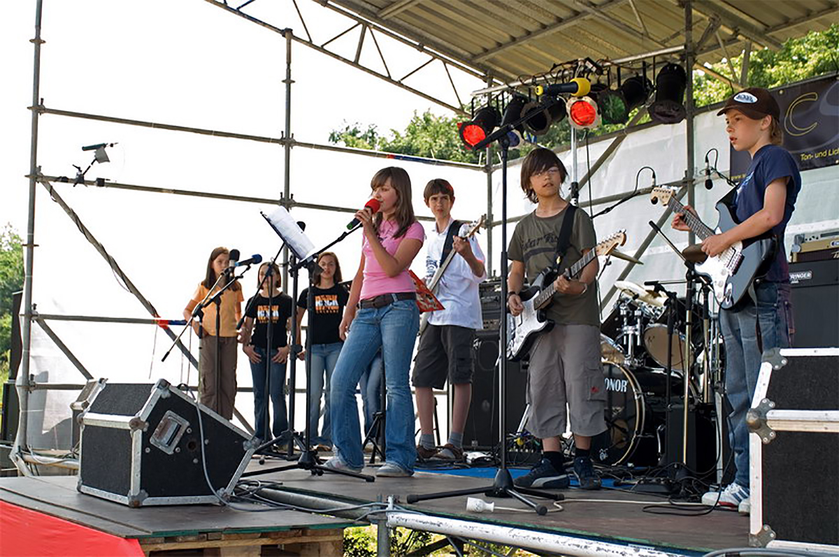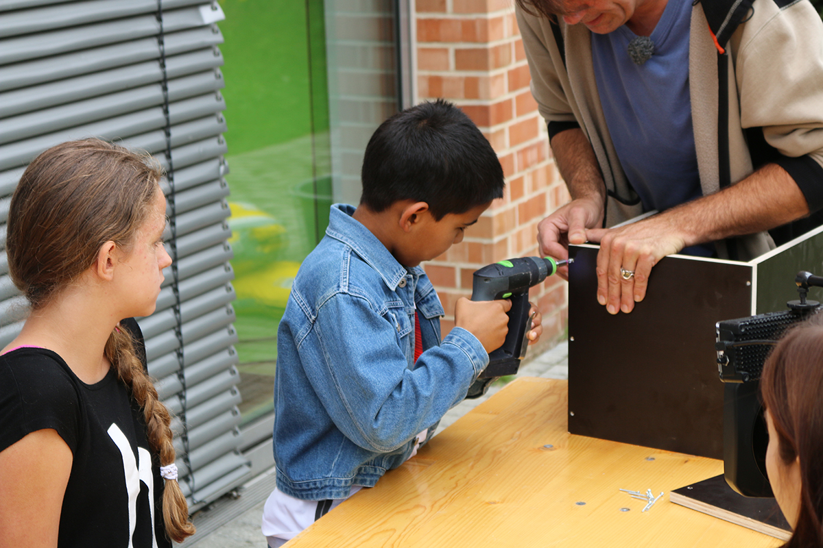Das ZDF war bei uns und drehte einen Beitrag über eines unserer Feriencamps. Jugendliche und Kinder bauten unter fachlicher Anleitung ein Gartenhäuschen auf unserem Freigelände und machten Musik in unserem Studio.